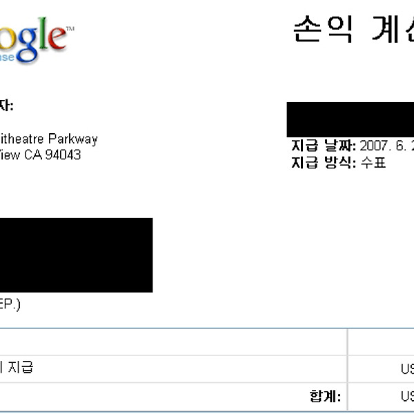 구글 두번째 구글수표 환전! 이번달에 날아온 두번째 구글수표를 환전하러 은행으로 갔다... 처음엔 농협으로 갔으나 그 지점이 외환을 취급하지 않는 지점이라 옆에 대구은행으로 가보라고 하였다.... 그래서 대구은행으로 갔는데.... 사람들이 마감시간이 다돼 가는지 터져 나갈라 그랬다....ㅋ 그래도 다행스럽게 외환쪽에는 사람들이 거의 없어서 대기하다가 추심료가 생각나서 대구은행에서 돈을 뽑을려고 ATM기 앞에서 기다렸으나.... 너무 오래 걸려서 농협으로 달려가서 돈을 인출한다음 대구은행 외환 창구에서 수표를 들이밀었다.... 직원이 요래~~요래~~요래요래~ 쳐다보더니... 아~구글수표네요~그러면서 들어 봤다고 하면서 친절히 해주었다... 자 일단 정리해서... 환전일자 : 2007.03.26 월 환전장소 : 대구은행 신암동(아양)지.. -