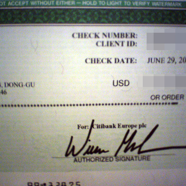 구글 구글애드센스 3번째 수표도착 2007년 6월 29일에 지급된 애드센스 수익금이 오늘 드디어 도착했다.. 저번 수표보다 상당히 빨리 도착한건데, 이번 수표는 스웨덴에서 날아왔는데.. 딱 2주 걸렸다.. 내일 은행가서 환전을 해야겠다..^^아싸~ -